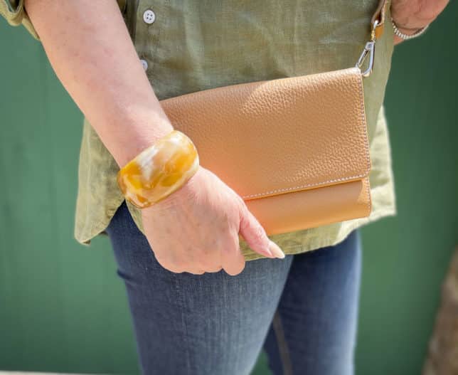 This convertible crossbody wallet clutch is a great shade of camel. This is a smaller version of the leather crossbody that I’ve been carrying lately. That one is sold out of the camel color and is only available in white now. This one is made so that you can remove the strap and use it as a wallet if you like.