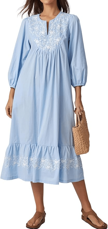 This dress has that casual-but-polished look Boden does so well. The button-down front and ruffle details give it structure, while the flowy skirt keeps it relaxed. A great option for warm days when you still want sleeves.