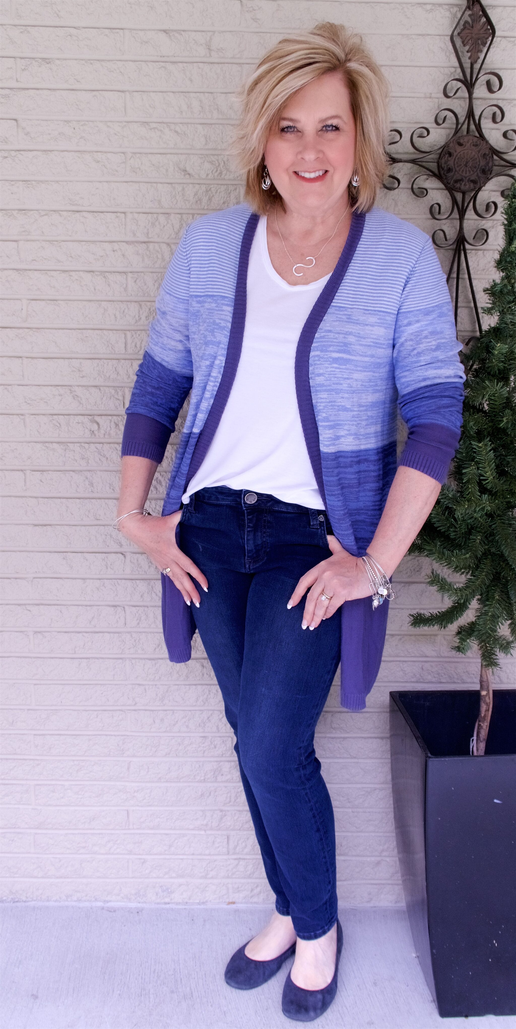 Here I am in another open front cardigan. I am sure that you are so surprised. Lol!!! I do love cardigans and especially in the early springtime. They are fantastic for adding a little warmth but more importantly, they make you look more “put together.” It is funny how adding one extra clothing item takes the look from just a white t-shirt and jeans to looking like an “outfit.” This color blocked cardigan is one that I found on clearance at Cato Fashions so it is no longer on their website. Make sure that you always check out the clearance section in every store first and then go to the regular priced items.