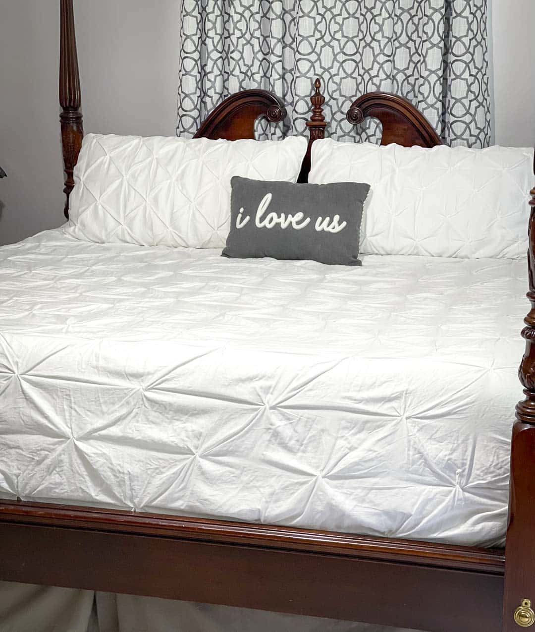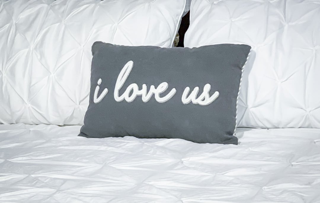 Once Joe saw the bedding set and the pillow that said I LOVE US, he had to smile. He knew I would win this argument because who could fight over a pillow that said, I LOVE US???