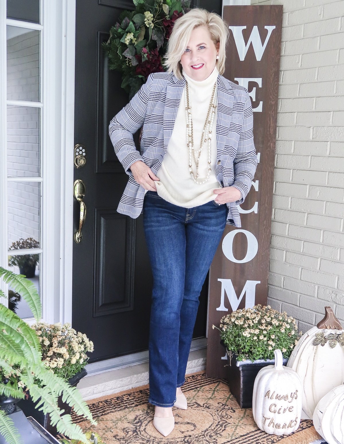 If I don’t have at least three or four relaxed fit turtleneck sweaters for the winter, I feel deprived. This look is a standard for me, and I love wearing jeans and a turtleneck sweater as soon as the leaves start to change colors. This soft, slightly oversized sweater is perfect to wear on its own, or layered as I did in this photo. Because I knew that the fit would be oversized, I ordered a medium, and I think it fits me perfectly. The sweater also comes in three other colors, but everyone needs a basic ivory sweater for the fall and winter.