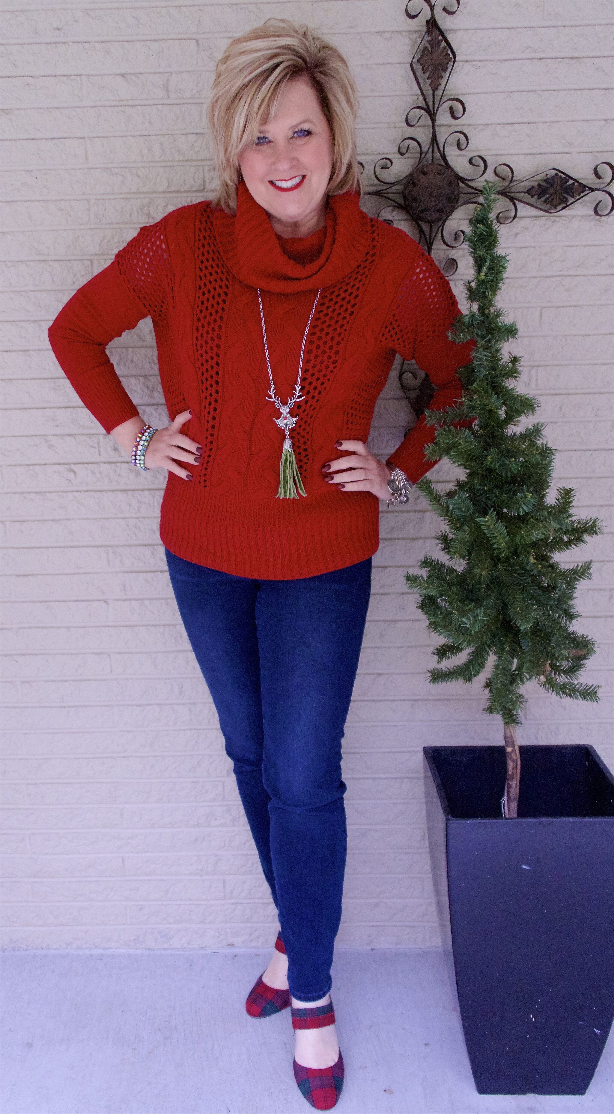 Love your outfit, especially the shoes!! I’ve been shopping for a red sweater or top for Christmas. The jewelry is cute too!