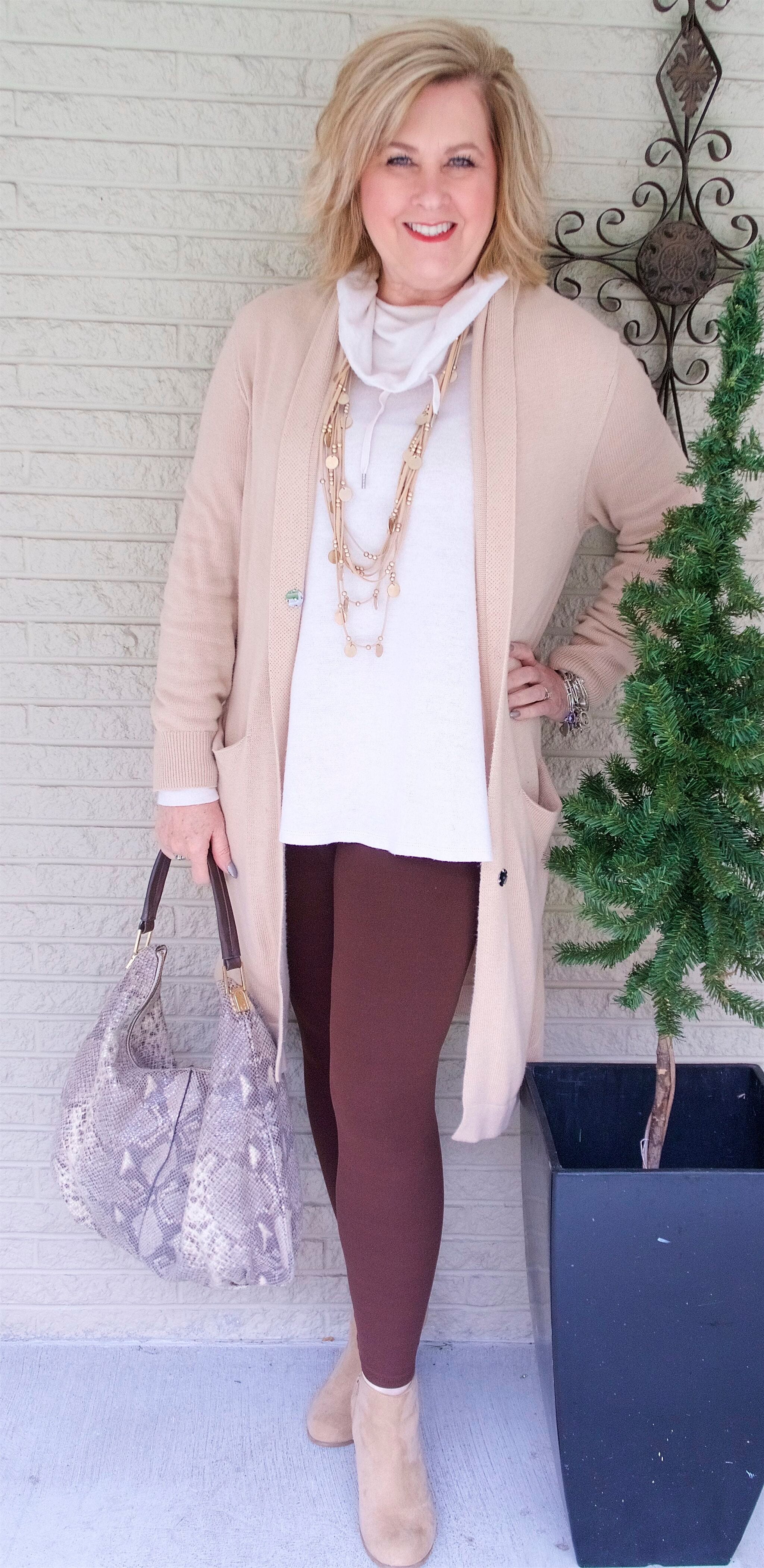 Do you gurls remember the other day when I told you that Joe wanted to know if I was going to wear, “that?” Here is the post link in case you missed that. Anyway, this super soft cowl neck and long duster were what I was wearing. I did have a pair of jeans on instead of these leggings but it didn’t make that big a difference in the look. This sweater was in the loungewear section at Cato Fashions (no longer on the website) and since I was only planning on lounging around, I thought the top would work out just fine. I like something soft and comfortable to wear especially if you can also run out to the store in it. Granted, if we had been going out to a ⭐⭐⭐⭐⭐ restaurant then I might have been a little under-dressed. Lol!