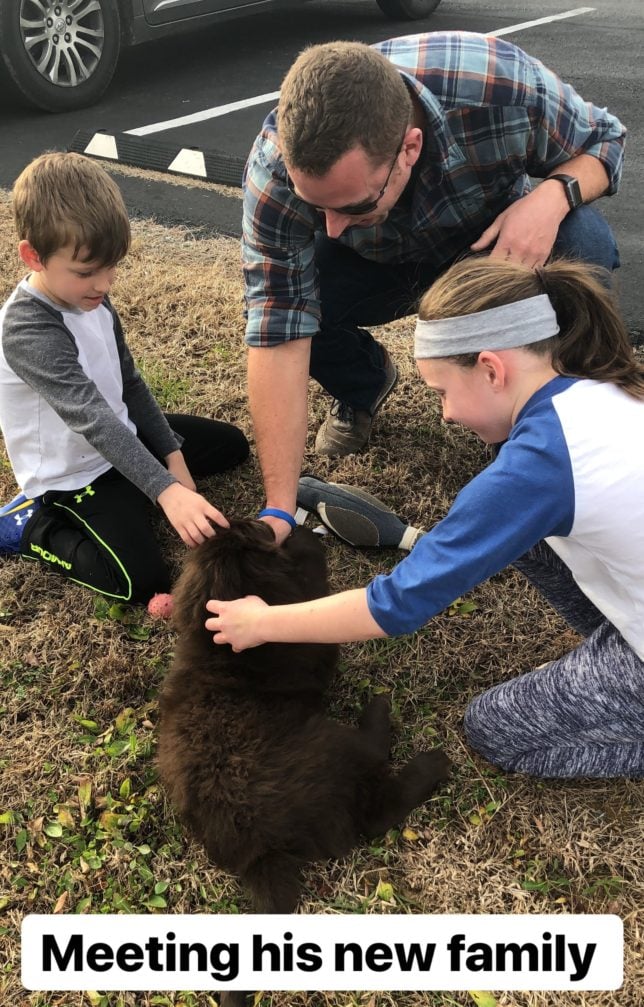 My son in Tennessee decided that for Christmas, as a family gift, they would get a Newfoundland puppy. The breeder where he purchased the dog was only forty miles away from my house. But, when you live in the mountains, you have to remember the roads are not straight. Instead, we hade to go over several mountains, ride beside the river and cross bridges, and encountered a slew of “kiss your butt” curves. If you are not familiar with that term, it means that by the time your car goes around the extremely steep curve you could stick your head out the window and kiss your butt. Lol! I think that you get the idea. Haha. We went prepared to have a car sick puppy on our way home. We took baby wipes, paper towels, and even a dog seat cover just in case he threw up. However, we were pleasantly surprised since he made it home just fine. I thought you might want to meet Koda (because he looks like a Kodiac bear) and some of his new family.