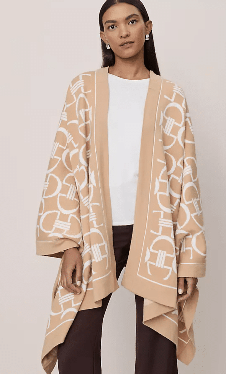 LOVE! This wrap-style scarf feels more like a light layer than an accessory. The chain-link print adds a polished, slightly graphic element while still remaining neutral. It’s a great option if you like scarves that function almost like a shawl.