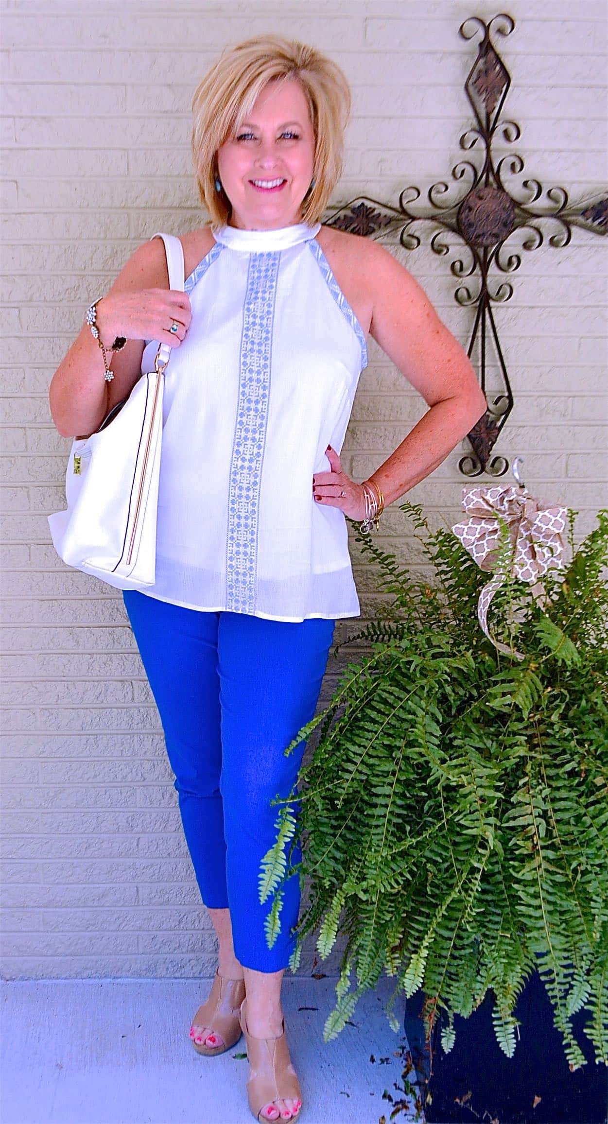 I wasn’t sure I would be able to get this post done. I thought it was hard working a full-time job and doing the blog but I think baby sitting a 4-year-old is harder. Haha! I bought this top a week or so ago at Cato fashions. I loved the gauze fabric and how it was lined underneath. I hate when my top is see-through. ? Even though I didn’t buy the top because it was blue (in honor of baby boy Stephens) it still goes with my baby theme. Lol! The halter neckline and the baby blue embroidery are unique details that really set the top apart from other tops. Some of you have asked about my strapless bra, my bra is one by Sweet Nothings and I like it because it stays up and doesn’t cut into my skin.