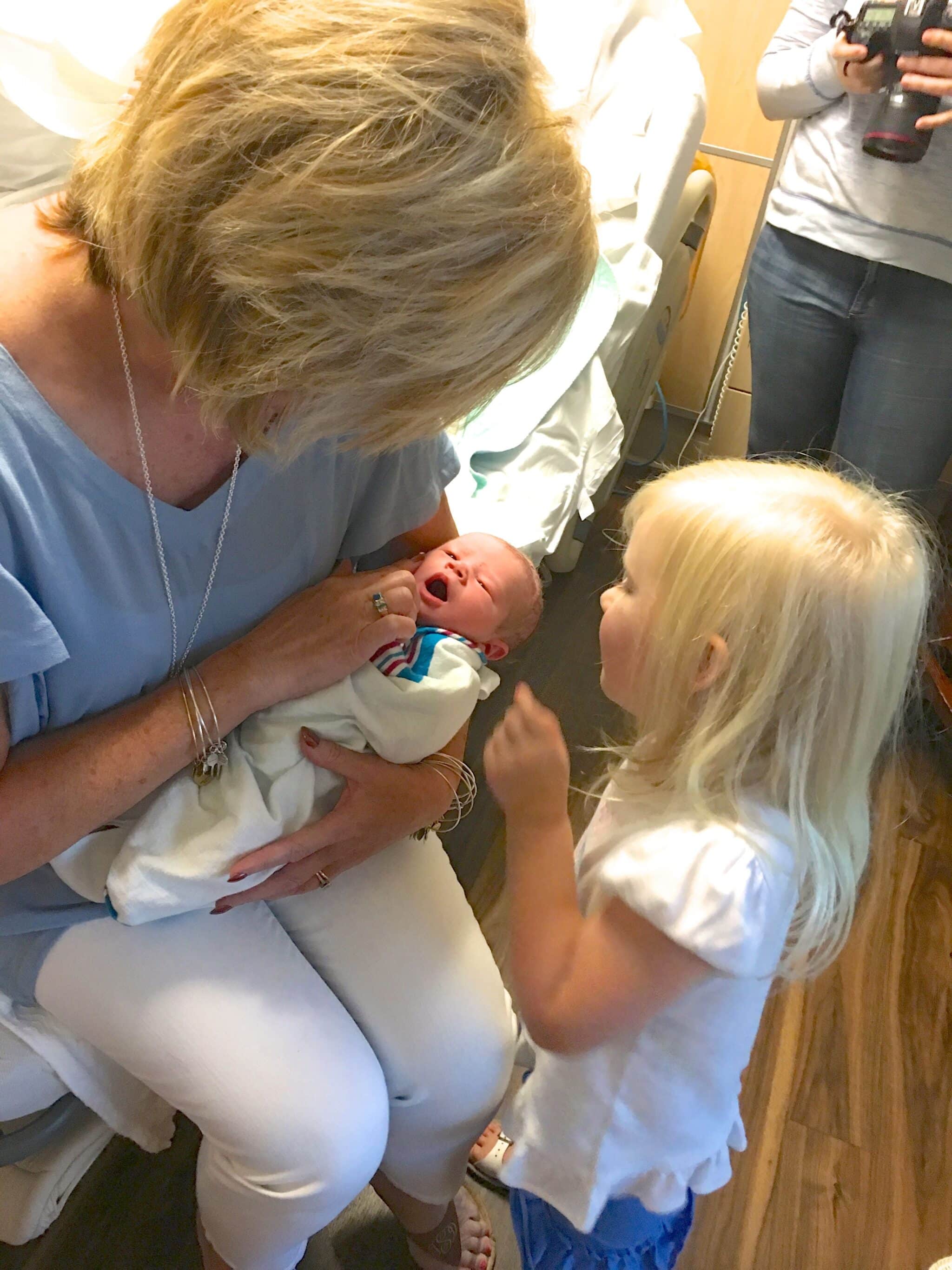 Today was not my normal day as if yesterday was. Lol! So, if you read my post on yesterday you know that my son and daughter in law welcomed a healthy son to their family. It is so wonderful to welcome a new life into the family. Emersyn is smitten that is for sure. I was holding him for the first time and she was inspecting everything on him. Then she decided that she needed to hold him all by herself.
