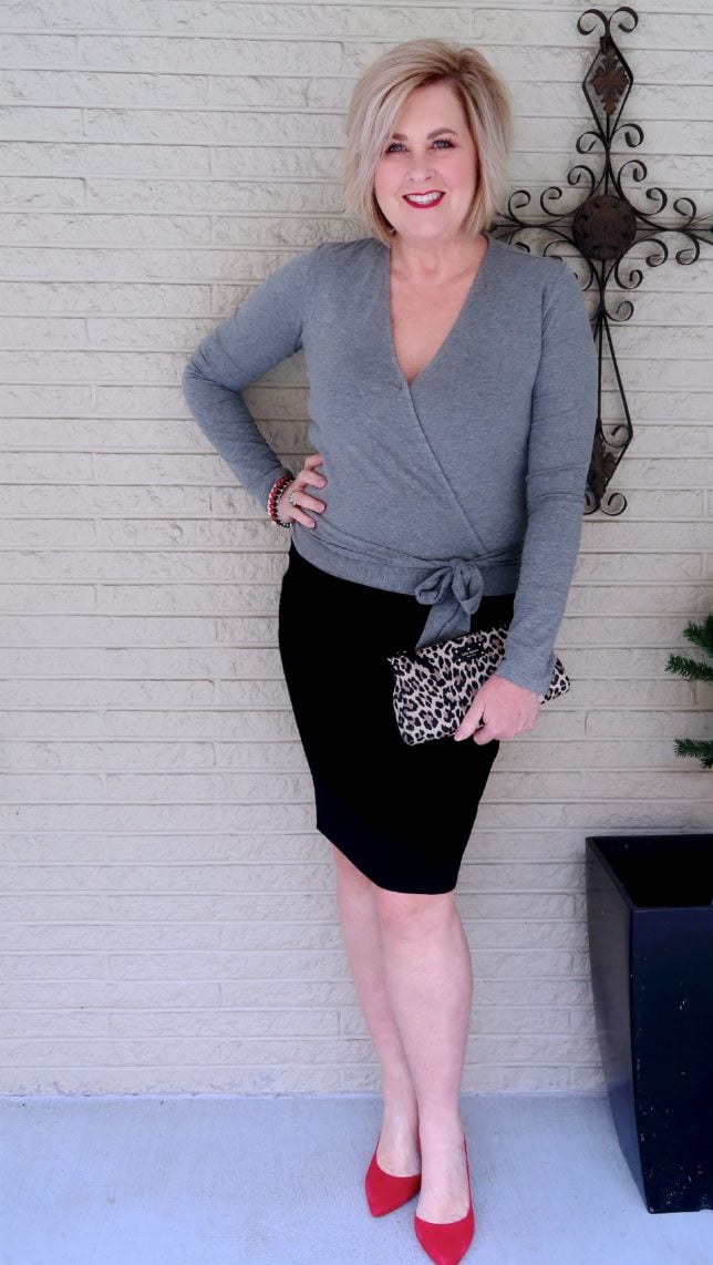 50 IS NOT OLD | WHAT TO WEAR ON A VALENTINE'S DAY DATE | FASHION OVER 40This skirt hits at just the right spot on the knee to be super flattering and also conservative. The snug body con fit ramps up the sexy level so there is no need to show any more leg than this. The skirt is made from a dense Ponte-knit fabric and it has a higher waistline. I ordered a medium but a large might have been more comfortable since this is made to fit tight. This comes in regular and plus sizes, and here is the link to order. 50 IS NOT OLD | WHAT TO WEAR ON A VALENTINE'S DAY DATE | FASHION OVER 40Don’t forget to stop by and say hello to Deborah today. Her blog is called Fabulous After 40 and I know you will enjoy it immensely.
