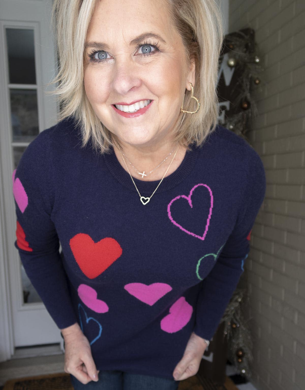 I like that this sweater could be worn at any time of the year, but it would be especially great for Valentine’s Day. I am wearing a medium in the sweater, so I think that it is true to size. However, when I looked, they were sold out of all sizes. Anytime a holiday is approaching, you need to get your orders placed early if you want to find your size. I will show you some others that I like, and I have already ordered a couple of them myself.