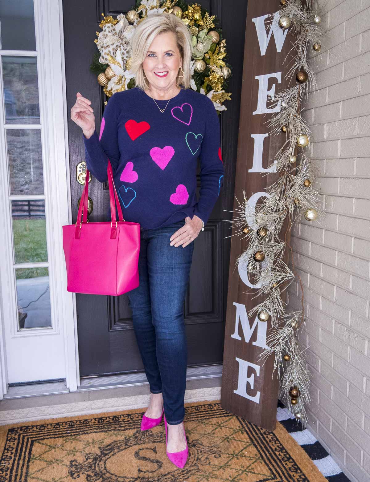 Hey pretty lady, I love that’s sweater! I love Valentine’s and you are right that’s what her could be worn anytime. And those pumps and that bag are amazing with that outfit. You know how to rock color. And thanks for the lesson about taking time for ourselves. In these gloomy depressing shutdown days in New Mexico those things are really important.